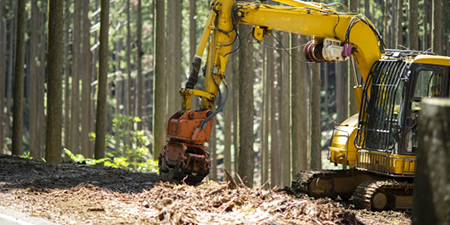 苗木を山に植栽(植え付け)する前には、苗木の生育環境をよくするため、雑草や灌木などを取り除く「地拵え」という整地作業をします。地拵えは林業の中でも大変な作業ですが、気を育てる過程の中で最初に行う重要な仕事です。