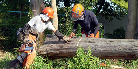 伐採された木は利用しやすい長さに切られ、丸太になります。これを玉切りといいます。